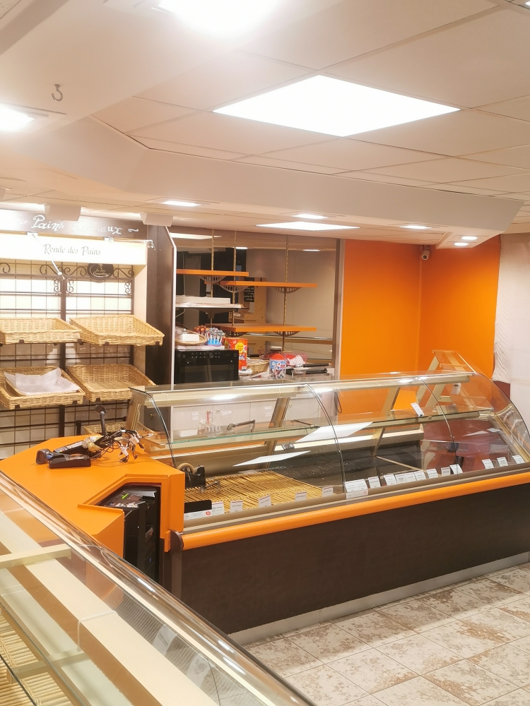 Votre peintre à Frouard a été contacté par une boulangerie pour refaire les peintures intérieures avec un changement de couleur et la reprise en peinture des meubles.